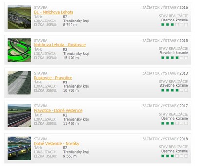 Aktuálny stav prípravy stavieb piatich úsekov cesty R2 v Trenčianskom samosprávnom kraji