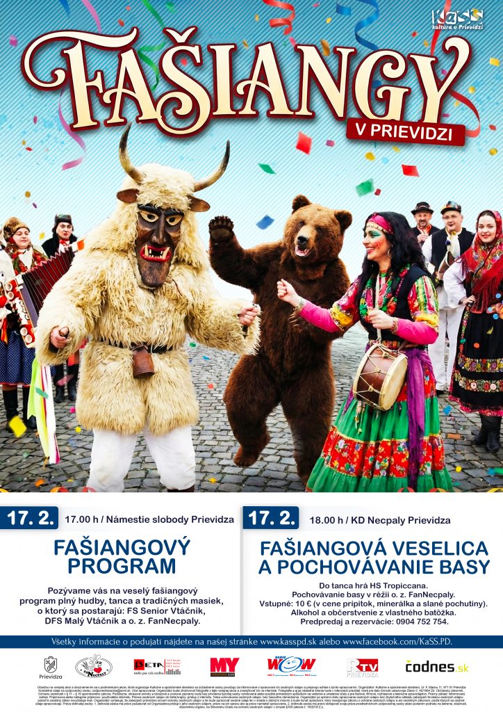 Ani tento rok nebude chýbať v Prievidzi tradičné sa lúčenie s Fašiangom. O zábavu sa postará Folklórny súbor Senior Vtáčnik, Detský folklórny súbor Malý Vtáčnik a o. z. FanNecpaly. Vidíme sa v utorok 17. februára 2026 o 17.00 h na Námestí slobody v Prievidzi.