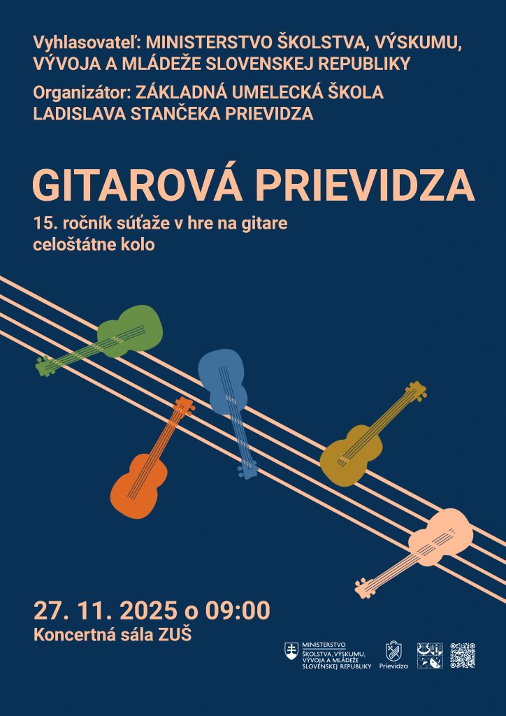 Základná umelecká škola Ladislava Stančeka v Prievidzi pozýva na 15. ročník celoslovenskej súťaže v hre na gitare – Gitarová Prievidza 2025.