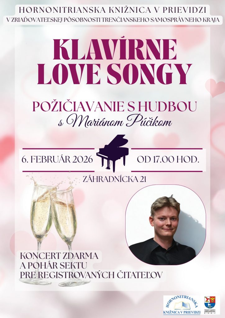Už 6. februára 2026 o 17.00 hod. vás pozývame do Hornonitrianskej knižnice v Prievidzi, Záhradnícka 21 na ďalší zo série koncertov Mariána Púčika v rámci hudobného cyklu Požičiavanie s hudbou. Tentoraz sa ponesie v znamení témy love songy.