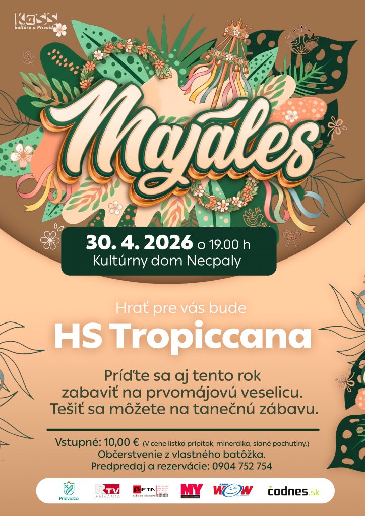 Srdečne vás pozývame na obľúbené jarné podujatie Majáles, ktoré sa uskutoční 30. apríla 2026 o 19:00 hod. v Kultúrnom dome Necpaly.