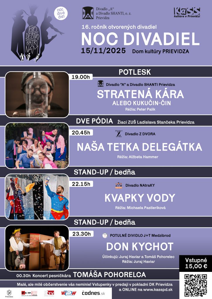 Noc divadiel 2025 sa blíži – už o mesiac, v sobotu 15. novembra 2025, sa po celom Slovensku rozoznie divadelná energia v rámci 16. ročníka tohto obľúbeného podujatia. Tento rok sa zapojilo viac ako 80 divadiel, škôl a kultúrnych inštitúcií, čo predstavuje rekordný počet účastníkov v histórii slovenského podujatia.