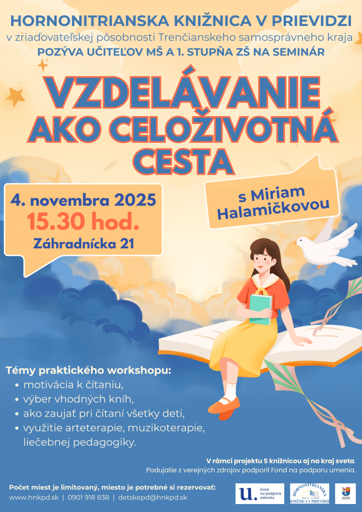 Veľmi si vážime prácu učiteľov, ktorí malých čitateľov neúnavne vedú ku knihám a záleží im na tom, aby deti motivovali k čítaniu. Preto sme sa rozhodli zorganizovať seminár, ktorý poskytne učiteľom materských škôl a 1. stupňa základných škôl cenné rady, ako pracovať s knihami tak, aby svojich žiakov motivovali k čítaniu.