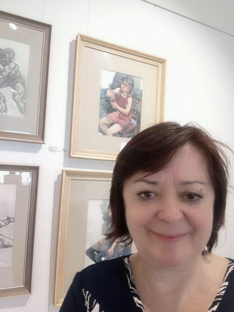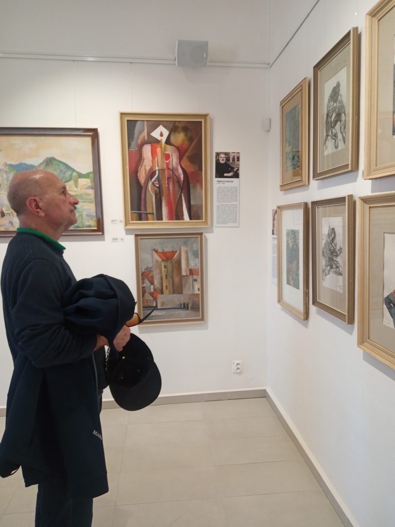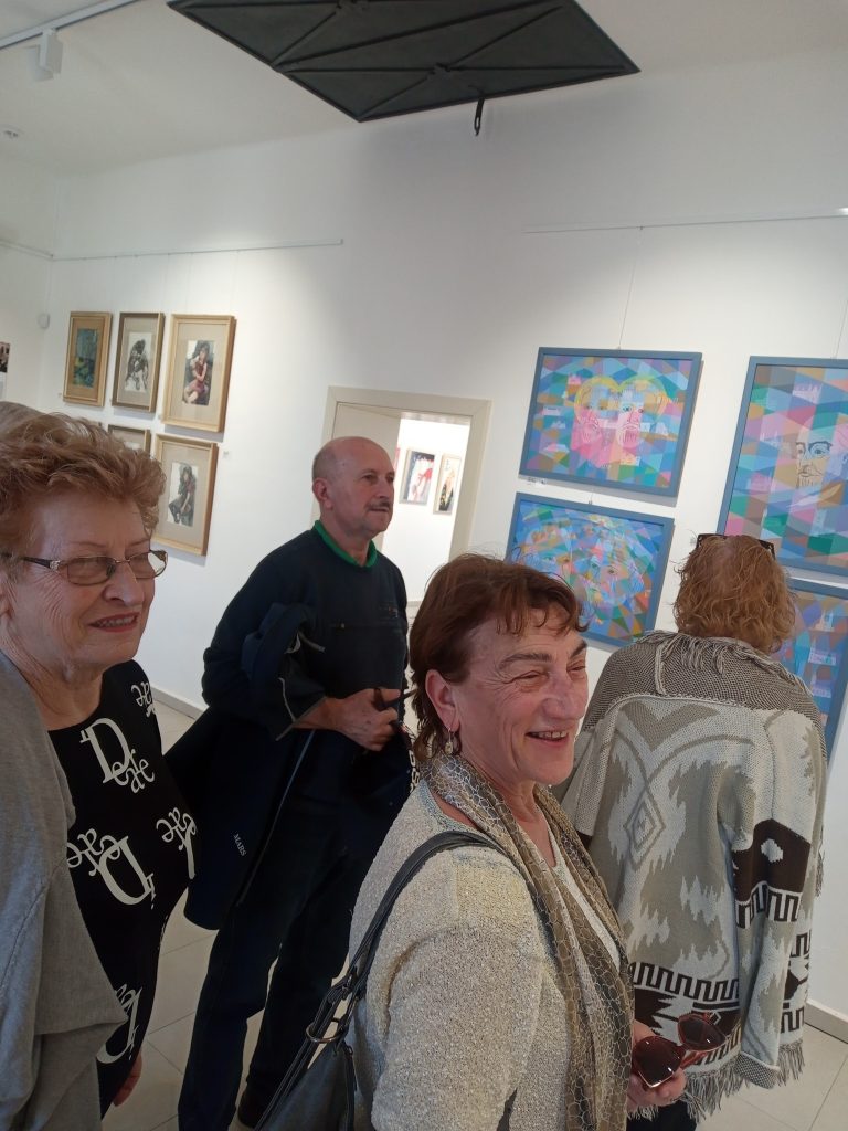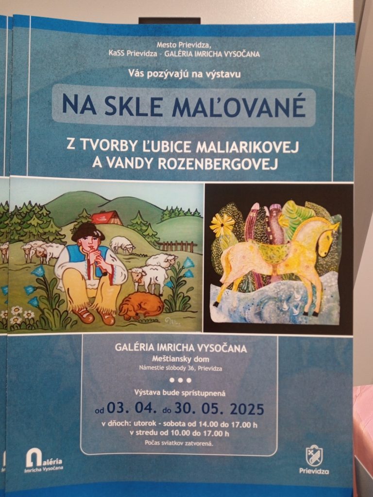 V Galérii Imricha Vysočana sme si prezreli výstavu NA SKLE MAĽOVANÉ od autoriek Ľubice Maliarikovej a Vandy Rozenbergovej. Vystavované diela boli veľmi zaujímavé, spojené s ľudovými tradíciami, obradmi a zvykloslovím, s ilustráciami v knihách. Pozreli sme si aj stále výstavy obrazov prievidzských autorov. Potešili nás aj obrazy nášho rodáka z Necpál Alojza Petráša, ktorý je bratom našej členky.