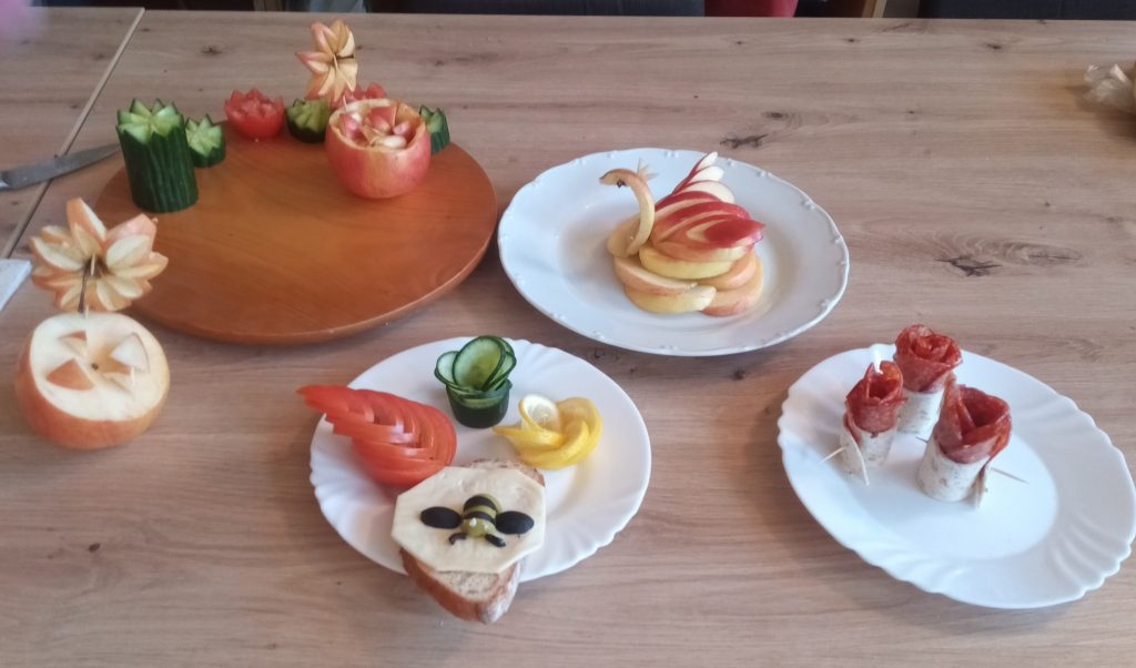 Fantázii sa medze nekladú a treba použiť trochu kreativity. Ako na to? Bolo cieľom tvorivej dielne, čo vyčarovať z ovocia a zeleniny a ako potešiť deti aj rodinu. Naučili sme sa urobiť labute z jablka, tučniakov, včely, sviečky, ruže z citróna, z uhorky a rôzne dekorácie. Môžeme to využiť pri veľkonočnej kuchyni. A ideme na to!