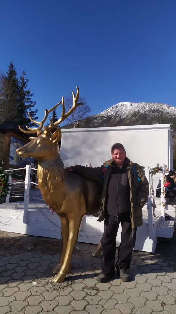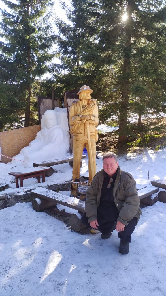 Ďalším cieľom bola vychádzka k Rainerovej útuľni, kde sme nemali šťastie na skutočného Petra Petrasa, tak aspoň vo forme sôch sme si na neho spomenuli, že sa mu podarilo zachrániť túto útulňu. Užívali sme si tento nádherný tatranský deň.
