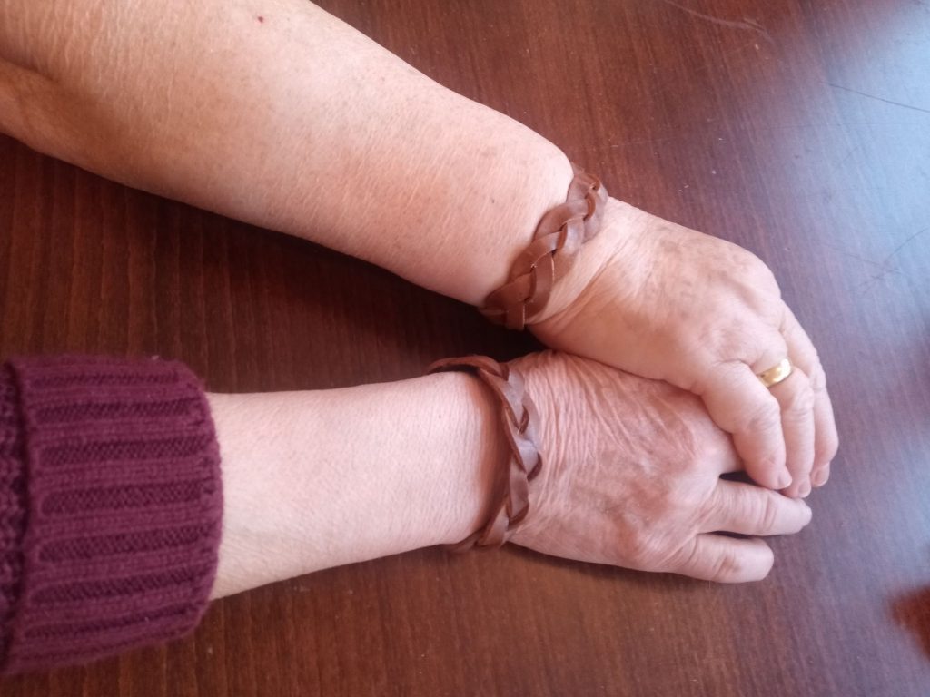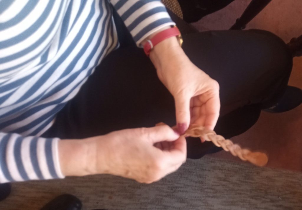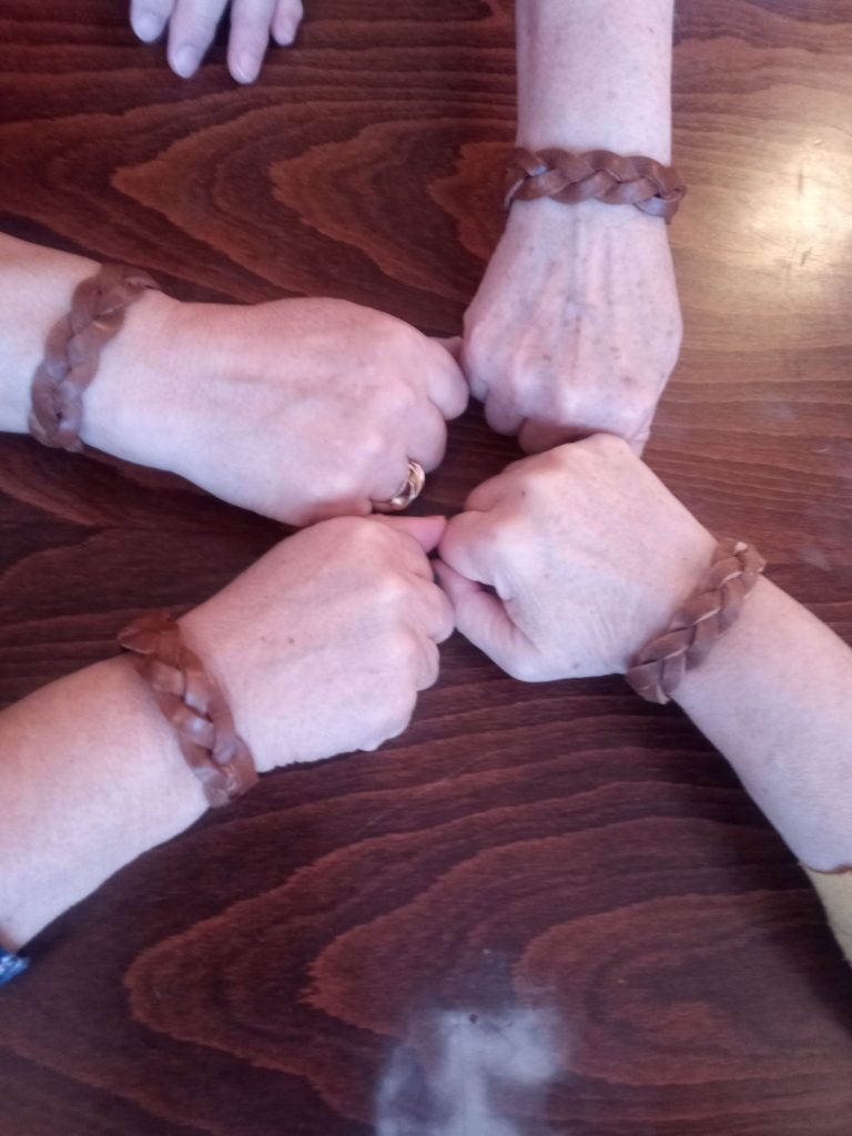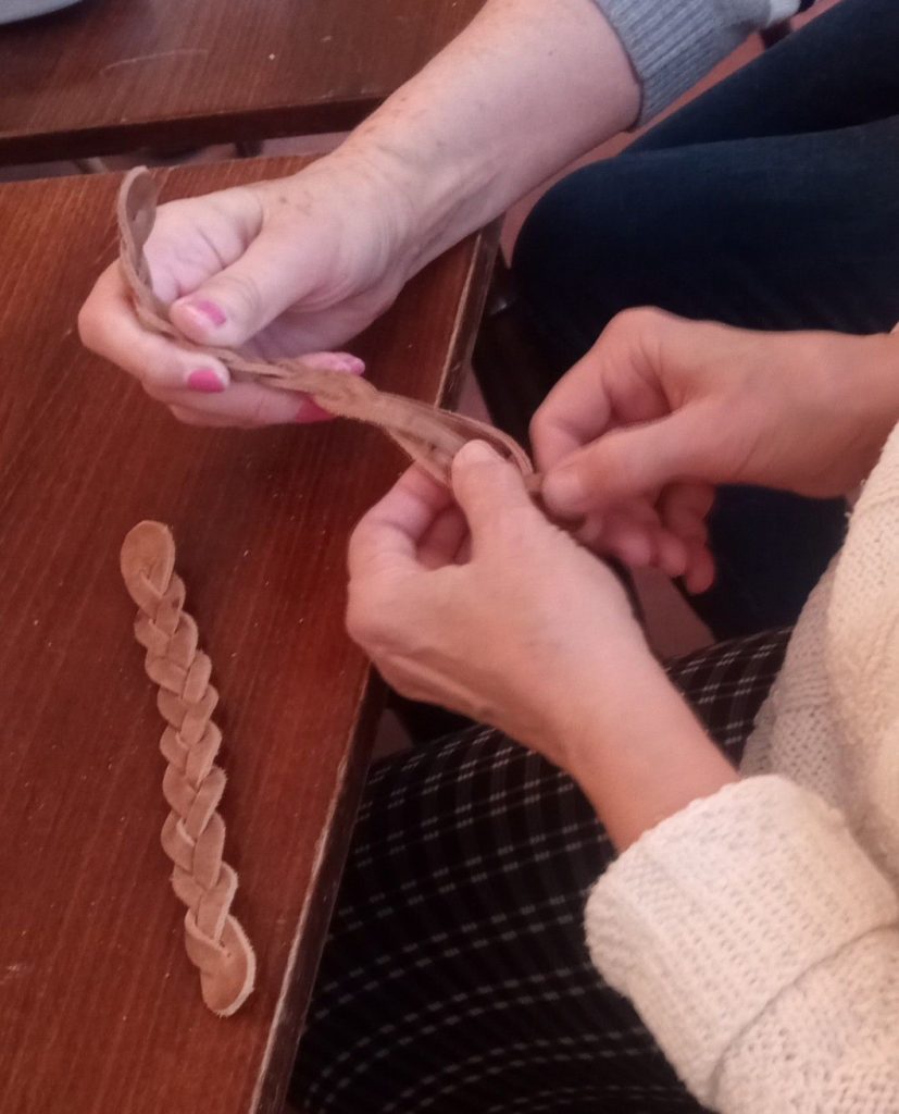 V rámci tvorivej dielne sme si vyskúšali svoje zručnosti pri práci s kožou. Po úvodnej inštruktáži a názornej ukážke od Mariana Chlpeka sme sa pustili do práce. Splietali sme prúžky kože do vrkoča. A výsledkom boli náramky, ktoré sa nám vynímali na našich rukách.