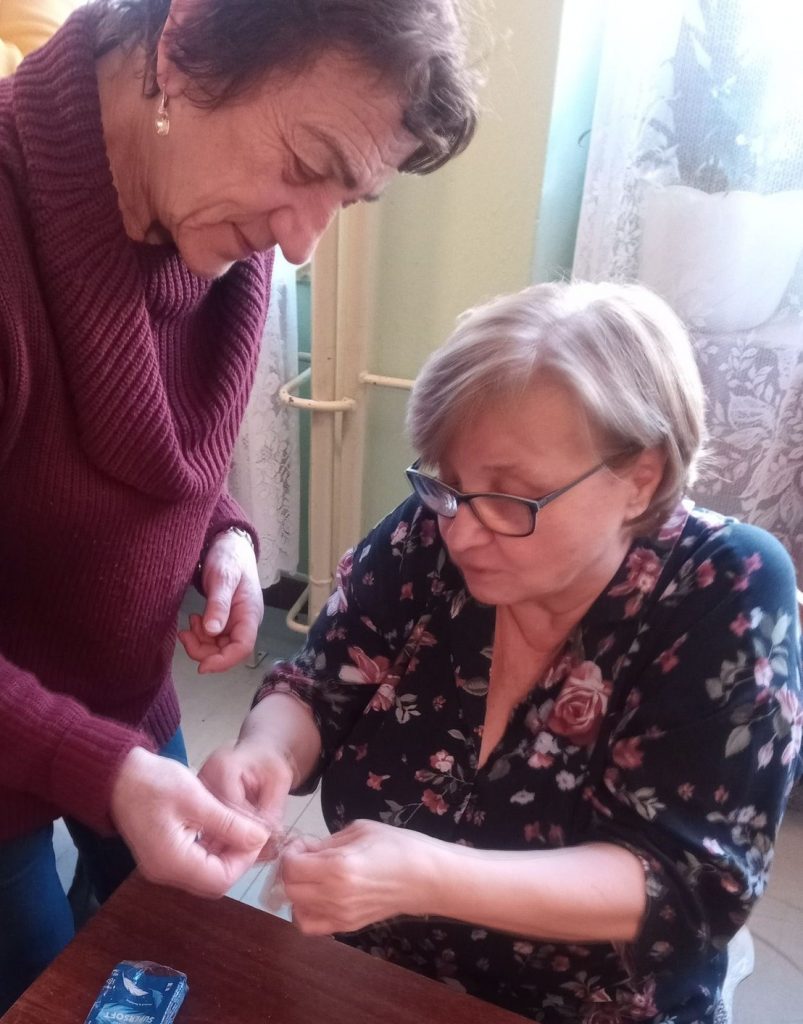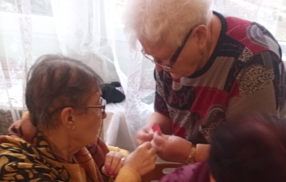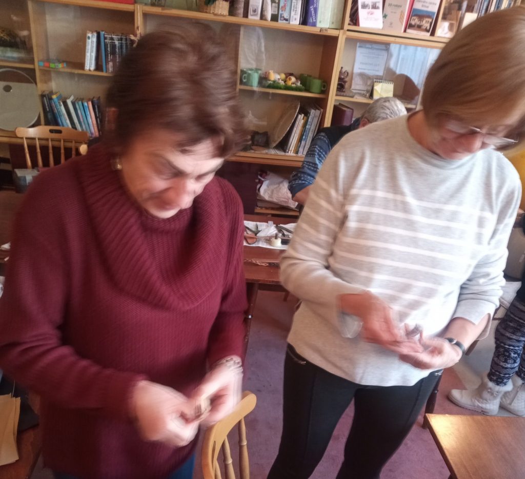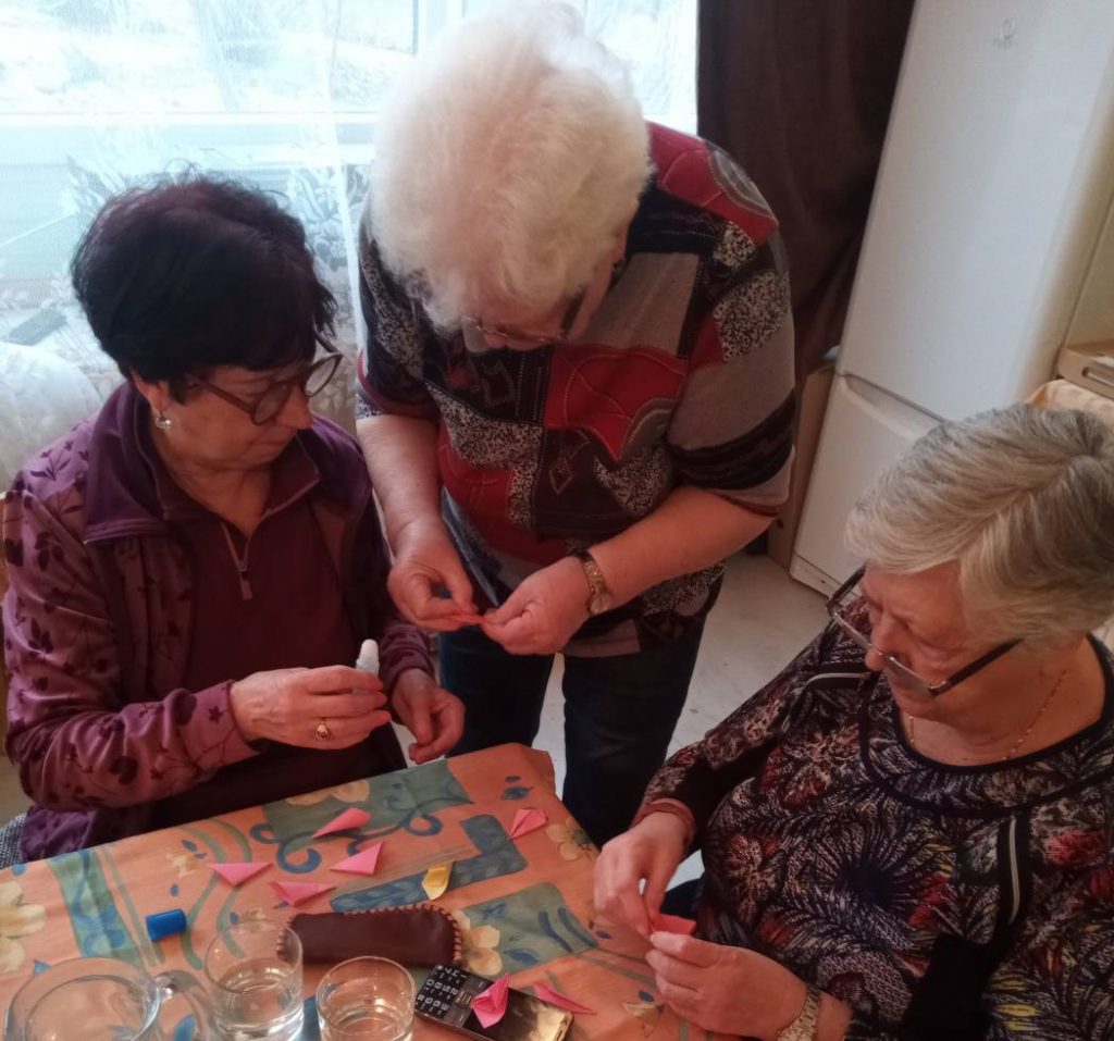 Na precvičenie manuálnych zručností nám poslúžili farebné papieriky na poznámky. Naša členka Anna Švarcová sa podujala, že nás naučí robiť z nich kvetinky. Mala s nami trpezlivosť aby sa nejaké podarili. A aj sa podarili. Niektorí zvolili pre svoju činnosť aj kartové hry a takto príjemne sme strávili popoludnie.