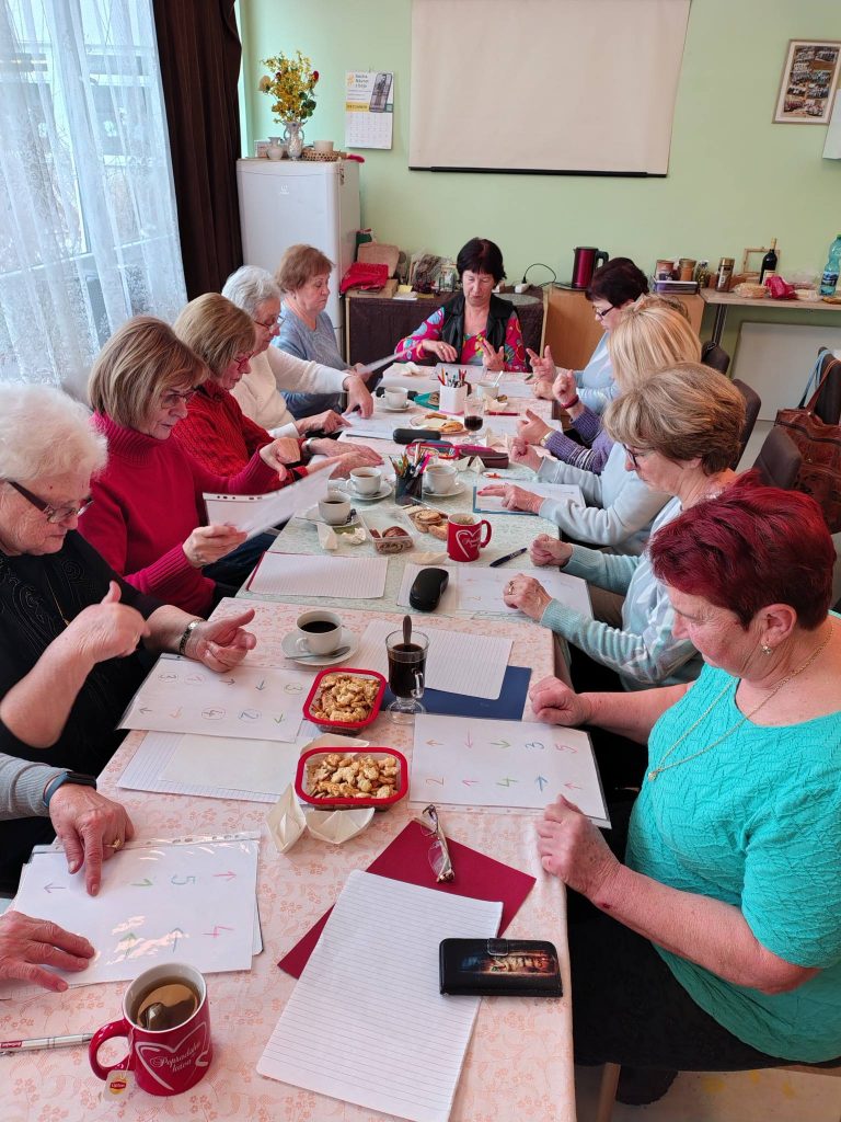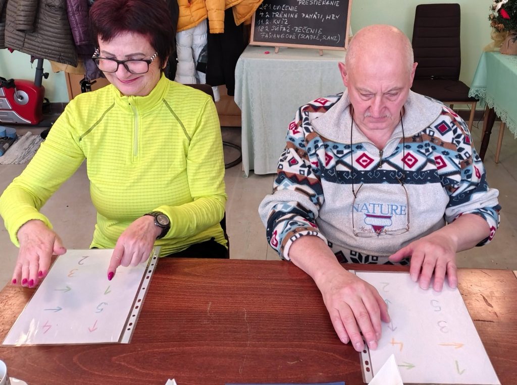Aby sme si udržali a zlepšili svoju duševnú kondíciu, tak sme sa stretli na tréningu pamäti. Riešili sme obľúbené rébusy, hádanky, hry so slovami, skrývačky, matematiku, tvorbu slov, ktoré nám pripravila Mariana Vaňová. Pracovné zručnosti sme si precvičili na papierových lodičkách a odvážlivci na zhotovovaní habarky do kuchyne. Mnohé činnosti pomohli, aby bola naša myseľ činorodá a svieža.