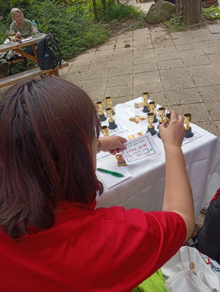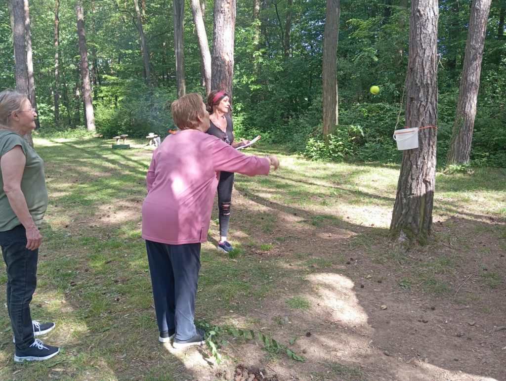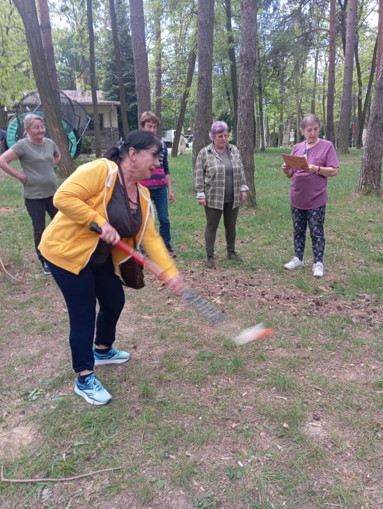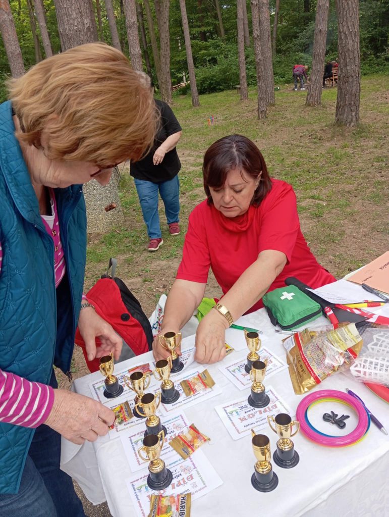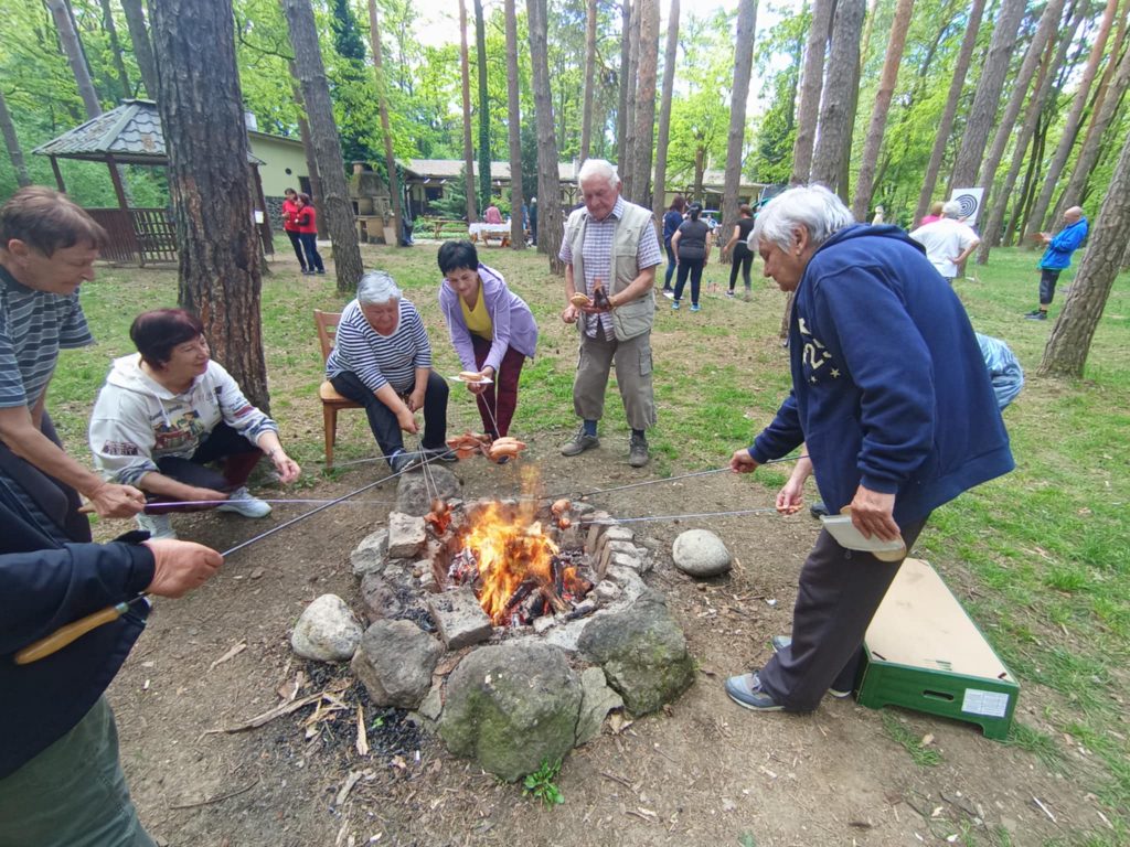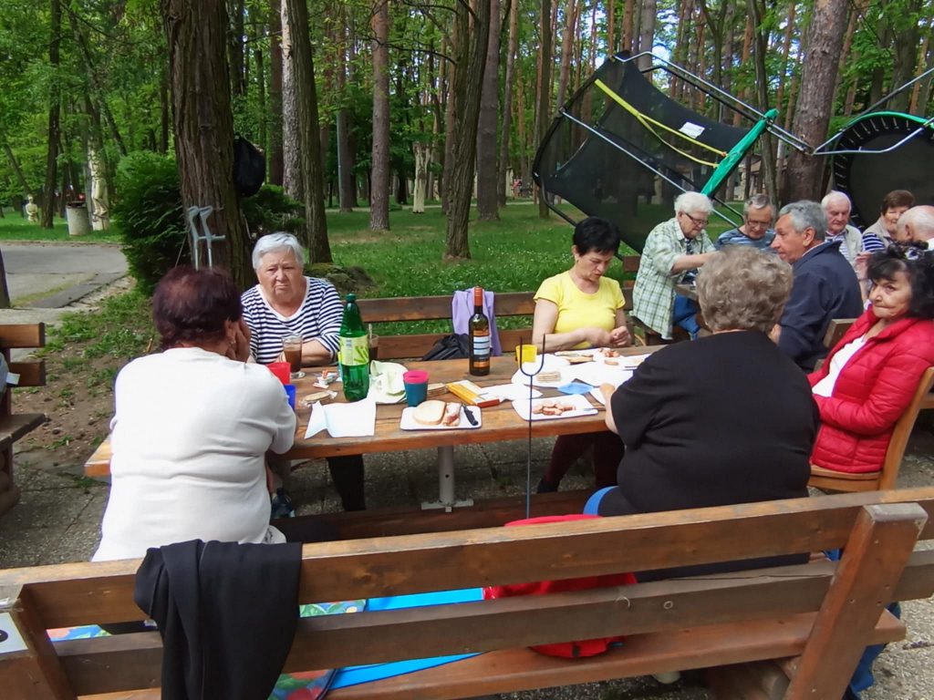 Príjemný zábavný čas sme prežili v lesoparku. Najprv sme si zasúťažili v rôznych disciplínach, zašportovali sme si, precvičili si svaly, nohy, ruky, ale aj použili taktiku a precvičili matematiku pri súťažiach. Hádzali sme šípkami, hokejkou triafali do bránky, zhadzovali sme pyramídu z plechovíc, triafali sme šiškami do vedra, umiestňovali sme krúžky na cieľ, triafali do kolkov. Niektorí ešte individuálne hrali maxibadminton. Po výdatnom výkone a ocenení najúspešnejších sme si pochutnali na opekaných špekáčikoch a slaninke. Nálada bola výborna, spev, harmonika, oddych, občerstvenie. Akcie sa zúčastnili aj do súťaženia sa zapojili Norbert Turanovič a Kvetoslava Ďurčová – poslankyňa mesta Prievidza. Počasie nám prialo a v družnej debate sme prežili opäť vydarenú akciu.