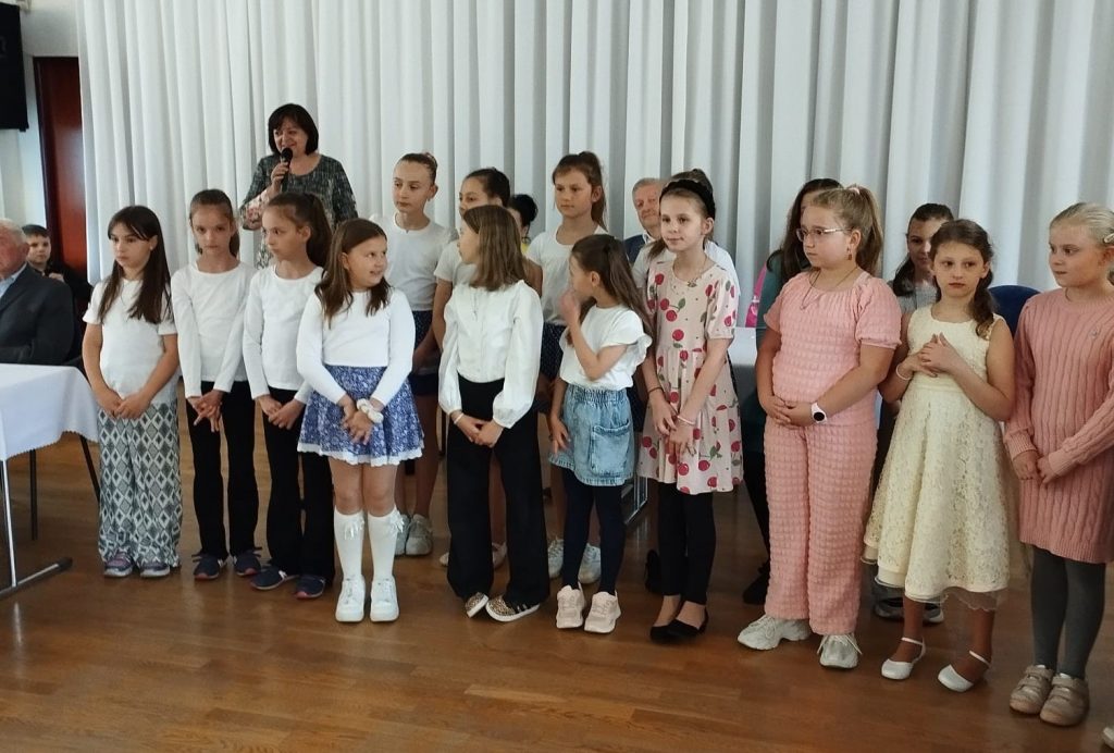 Všetci prichádzajúci vo vestibule obdivovali panely s kreatívnymi žiackymi prácami k téme výročia.