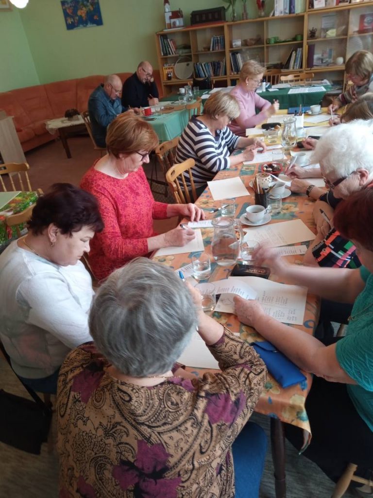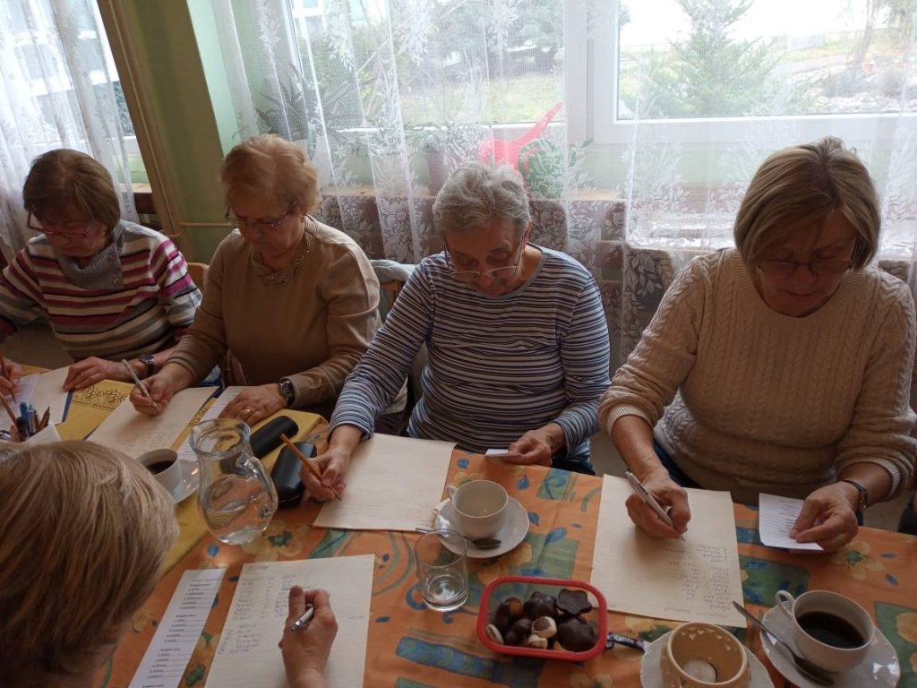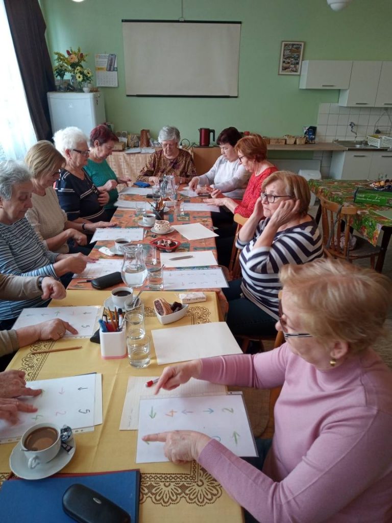 Ako je to s našou pamäťou a aké píše príbehy? To sme sa dozvedeli na našom tréningu. Precvičili sme si prsty, telo, správne dýchanie. Úlohy nám pripravila Mariana Vaňová, aby sme to hravo zvládli. A aj sme sa potrápili, aj nad výsledkami zasmiali. Riešili sme testy, popletené slovíčka, hlavolamy, skladali puzzle, pexeso, tvorili slová. Niektorí sa učili ako riešiť sudoku. A takto sme odhaľovali príbehy s pamäťou. Spoločne sme si posedeli a pohodu spríjemnili pri kávičke a čaji. Tešíme sa na ďalšie stretnutia.