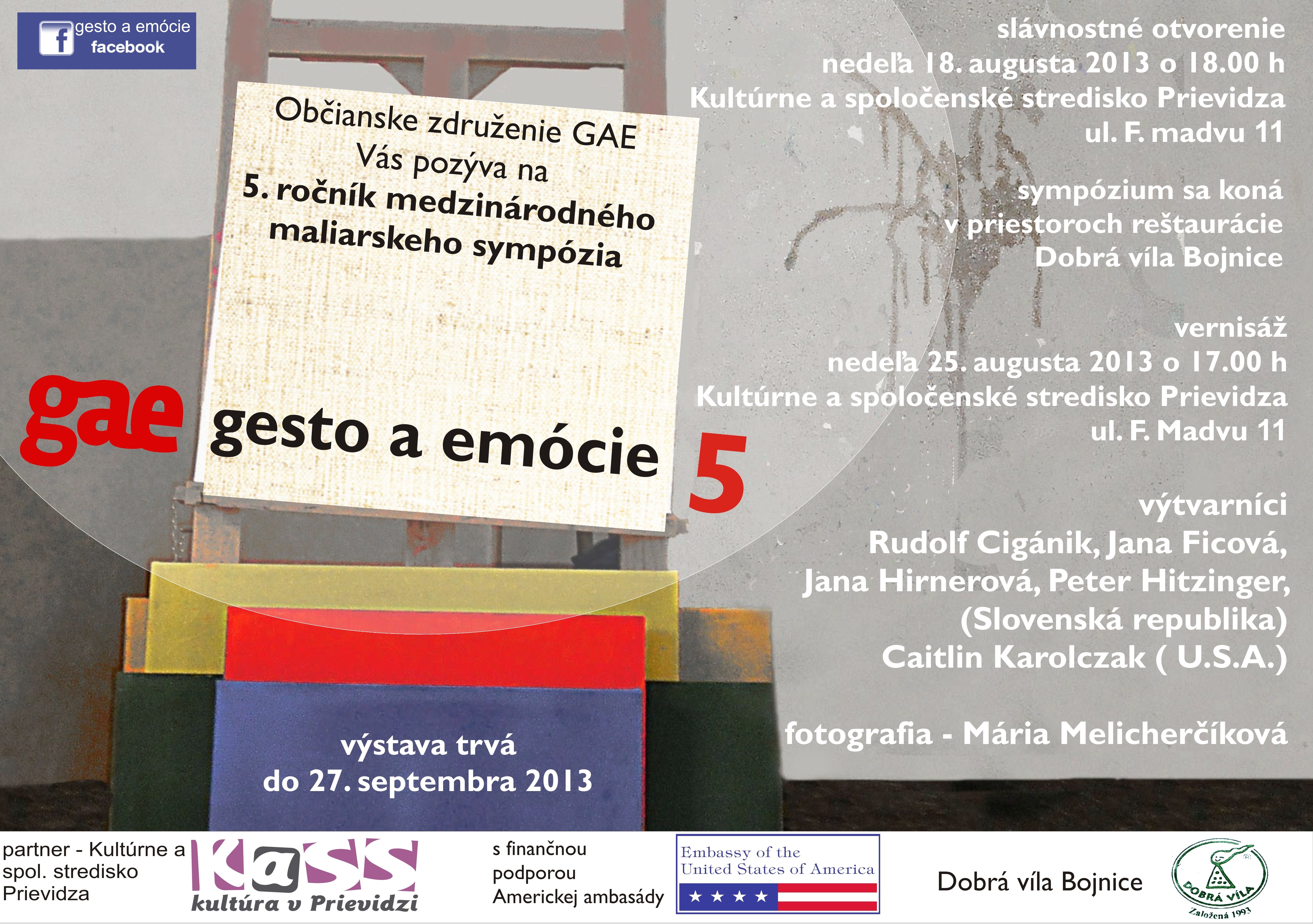 Občianske združenie GAE vás pozýva v nedeľu 18. augusta 2013 o 18.00 h do Domu kultúry v Prievidzi na slávnostné otvorenie maliarskeho sympózia.