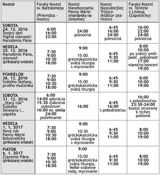 25.12.2016 – nedeľa – 1. slávnosť vianočná – 9:30