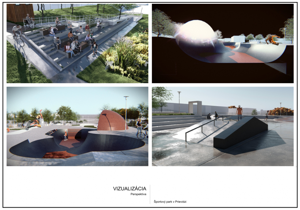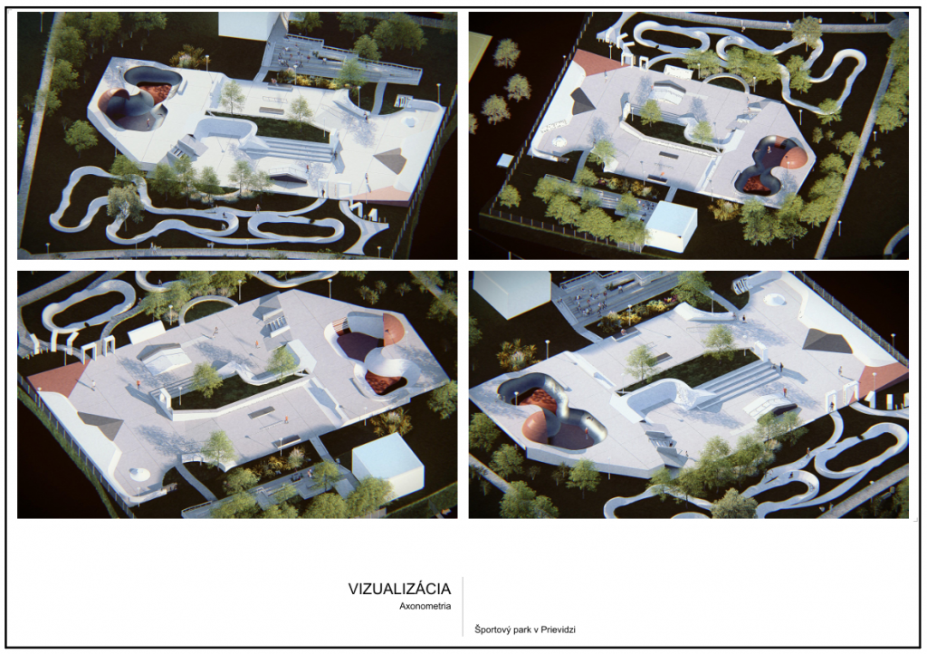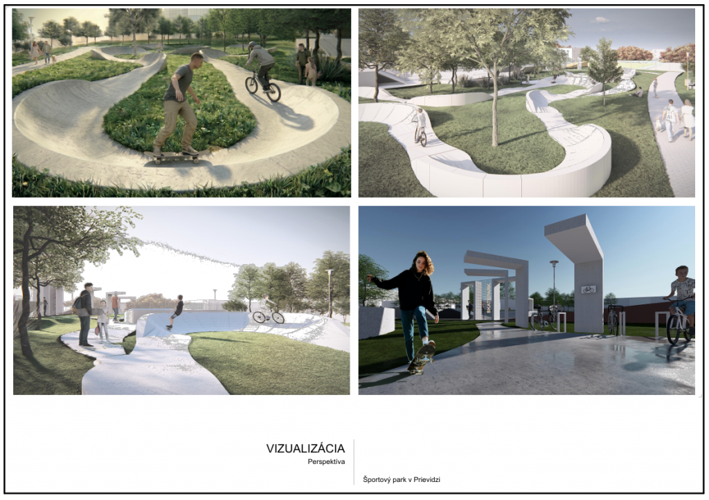 Mesto má aktuálne k dispozícii projektovú dokumentáciu, ktorú vypracovala spoločnosť ADIZ atelier s.r.o. Návrh rozpracúva podobu budúceho areálu, v ktorom budú dominantnými prvkami celobetónový skatepark a modulárny pumptrack doplnené zeleňou, oddychovými zónami a potrebnou infraštruktúrou. Návrh je spracovaný tak, aby pri športovom využití spĺňal požiadavky na mechanickú odolnosť, bezpečnosť, ochranu zdravia aj životného prostredia.