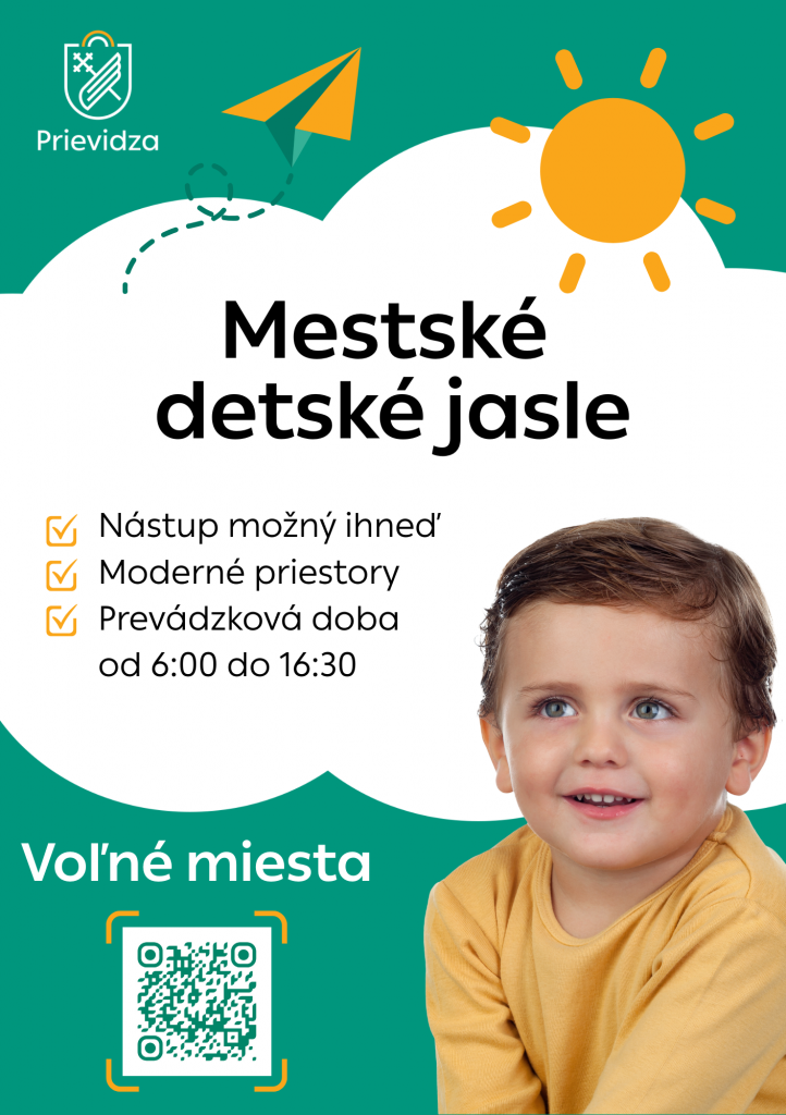 Ak uvažujete o zmene, návrate do práce alebo chcete svojmu dieťaťu dopriať kvalitnú starostlivosť v podnetnom prostredí, začiatok roka 2026 je ideálnym momentom. Prihlášku na prijatie dieťaťa je možné podať ihneď. Formulár a všetky potrebné informácie nájdete na webovej stránke mesta: www.prievidza.sk/mestske-jasle