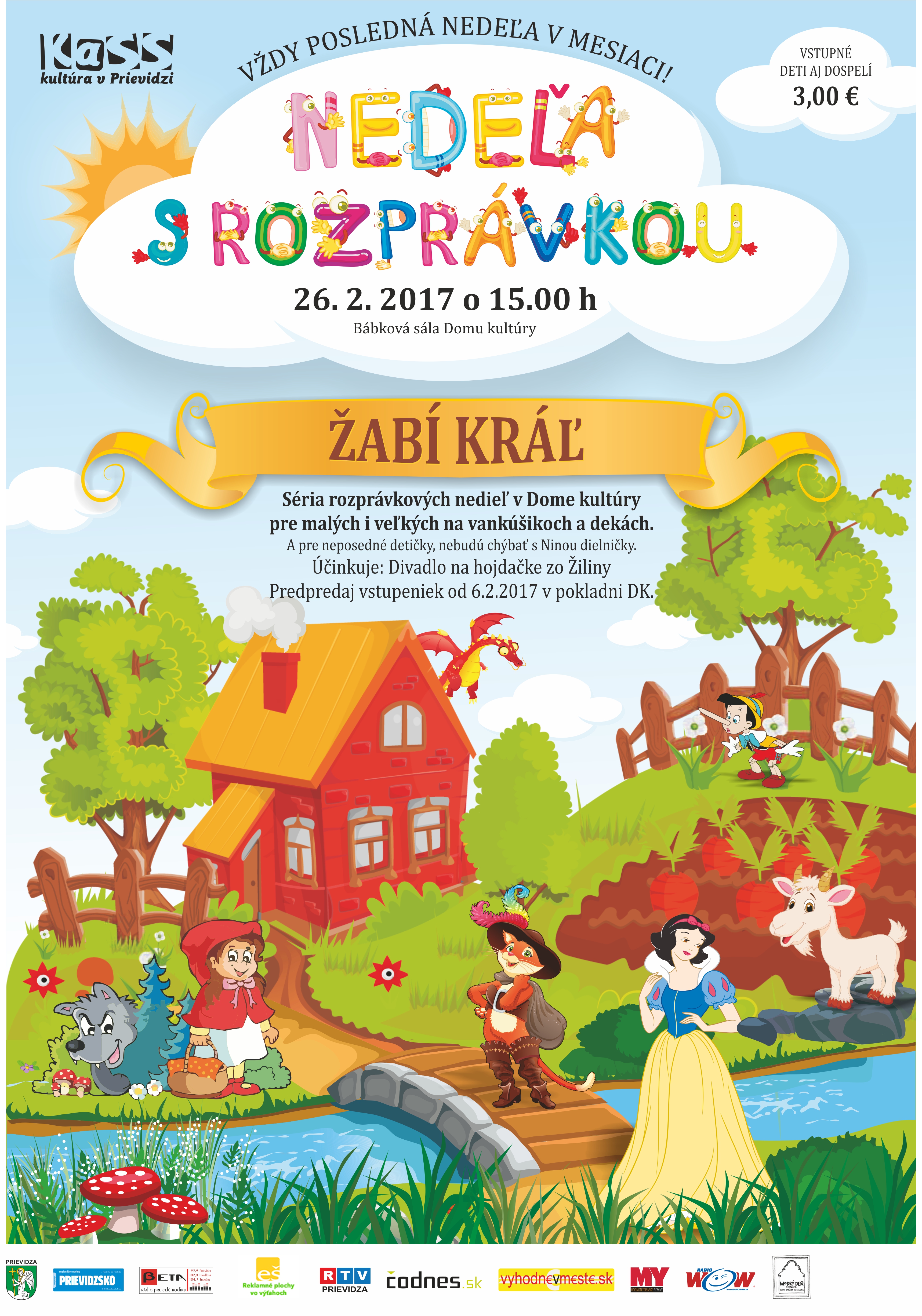 Vstupné: 3,00 €, predpredaj vstupeniek od 6. februára 2017 v pokladni Domu kultúry Prievidza