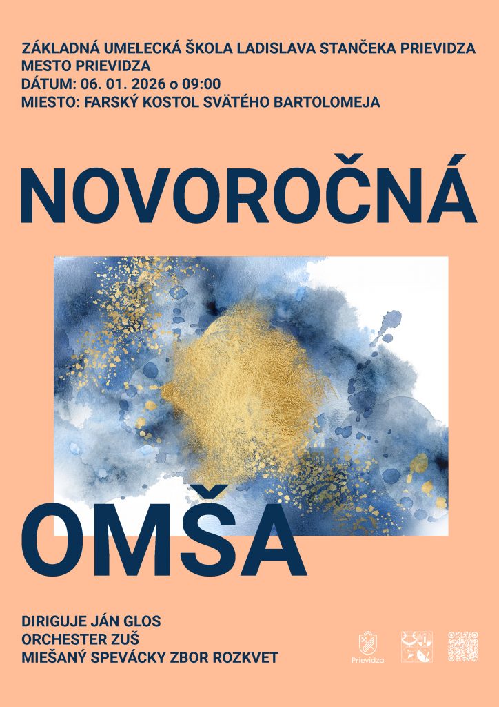 Mesto Prievidza a Základná umelecká škola Ladislava Stančeka pozývajú verejnosť na Novoročnú omšu, ktorá sa uskutoční v utorok 6. januára 2026 o 9.00 hod. vo Farskom kostole svätého Bartolomeja v Prievidzi.