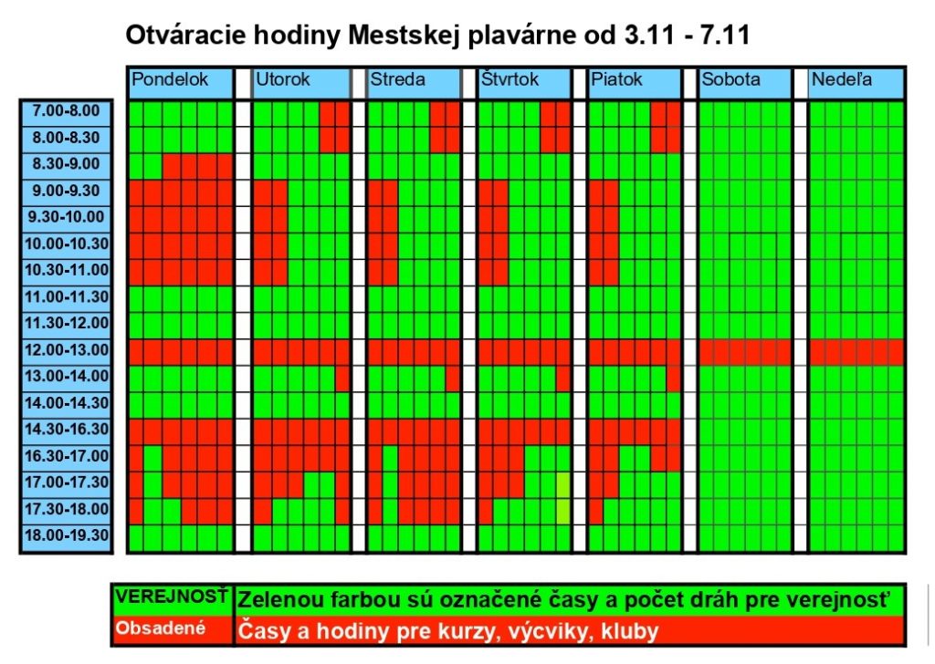 Všetky informácie a aktuálny rozpis hodín pre verejnosť nájdete na https://tsmpd.sk/sportoviska/kryta-plavaren/.