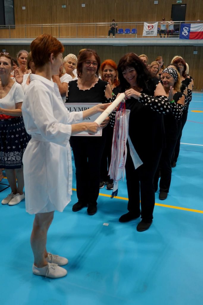 Na záver si všetci cvičenci spoločne zacvičili „Krokovku “ ,ktorá sa cvičila na XVII. Všesokolskom zlete v Prahe v roku 2024,na ktorom sa naša Olympia tiež zúčastnila. Program ukončili príhovorom opäť všetci starostovia sokola.