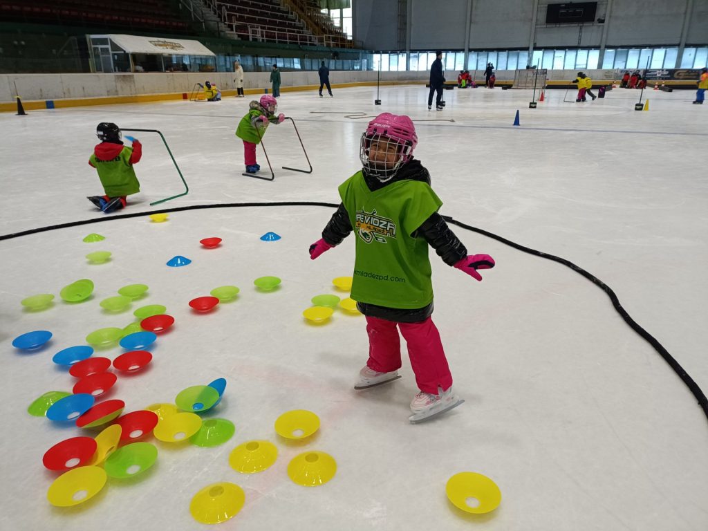 „Hneď po vianočných prázdninách sa naši najmenší pustili do športovania s nadšením. V termíne od 8. januára do 19. januára 2026 sa predškoláci zúčastnili kurzu korčuľovania na zimnom štadióne, kde pod odborným dohľadom profesionálnych trénerov získavali základy pohybu na ľade – bezpečne, hravo a krok po kroku,“ opísala riaditeľka MŠ P. Benického Renáta Szeghöová.