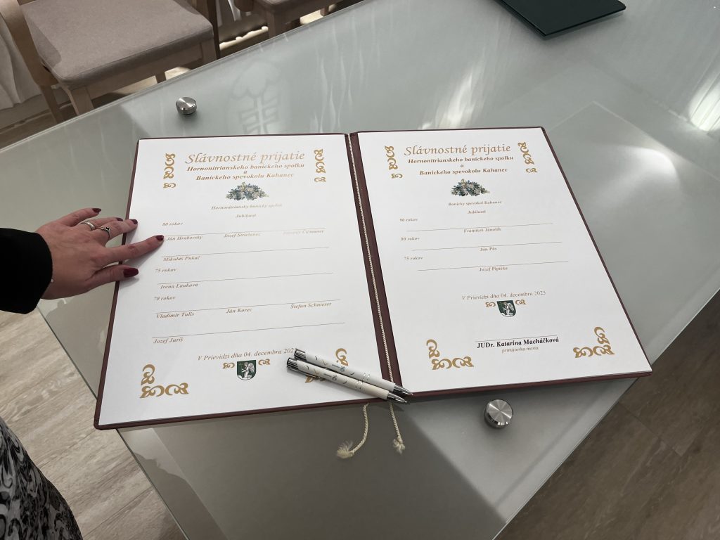 V stredu 4. decembra, na sviatok svätej Barbory – patrónky baníkov sa v Prievidzi uskutočnilo slávnostné prijatie jubilantov z Hornonitrianskeho baníckeho spolku a spevokolu Kahanec.