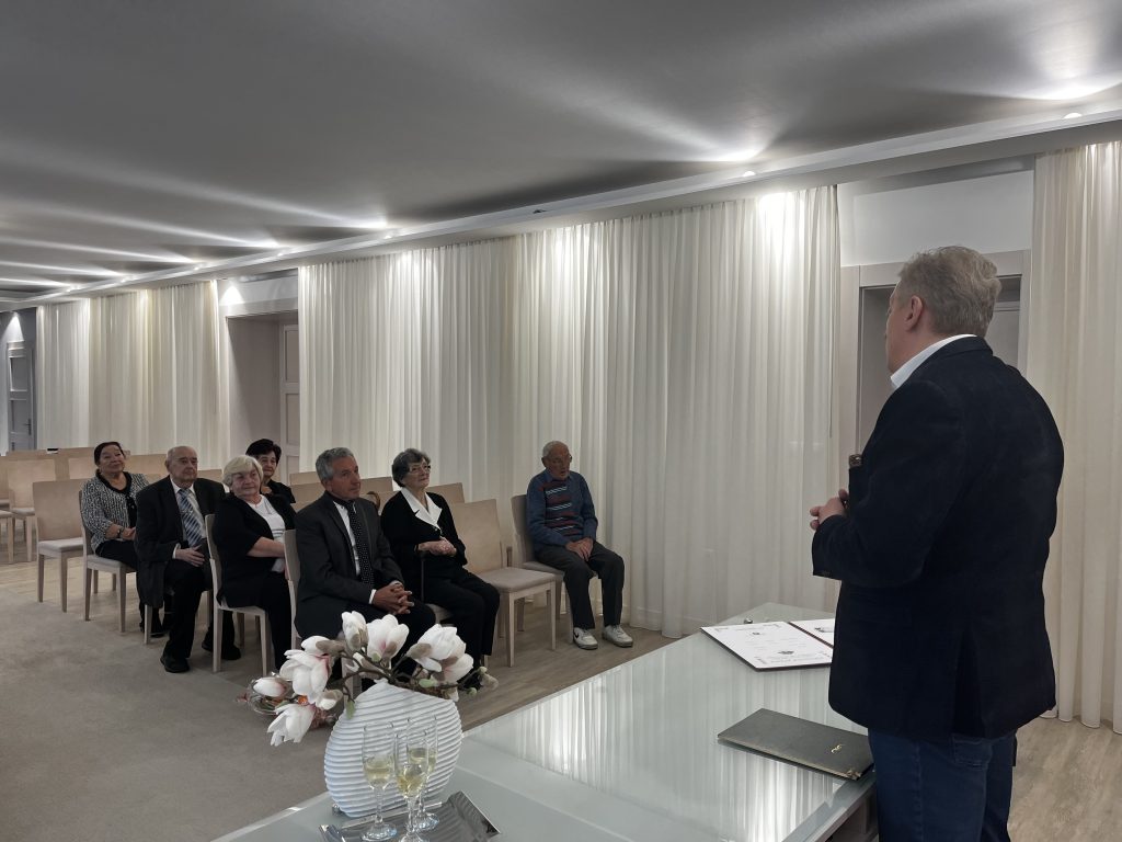 Viceprimátor mesta Norbert Turanovič všetkých prítomných jubilantov srdečne privítal a poďakoval im za ich dlhoročnú prácu, životnú múdrosť a prínos pre komunitný život v našom meste. Zdôraznil, že práve staršia generácia je nositeľom hodnôt, skúseností a tradícií, na ktorých stojí dnešná spoločnosť.
