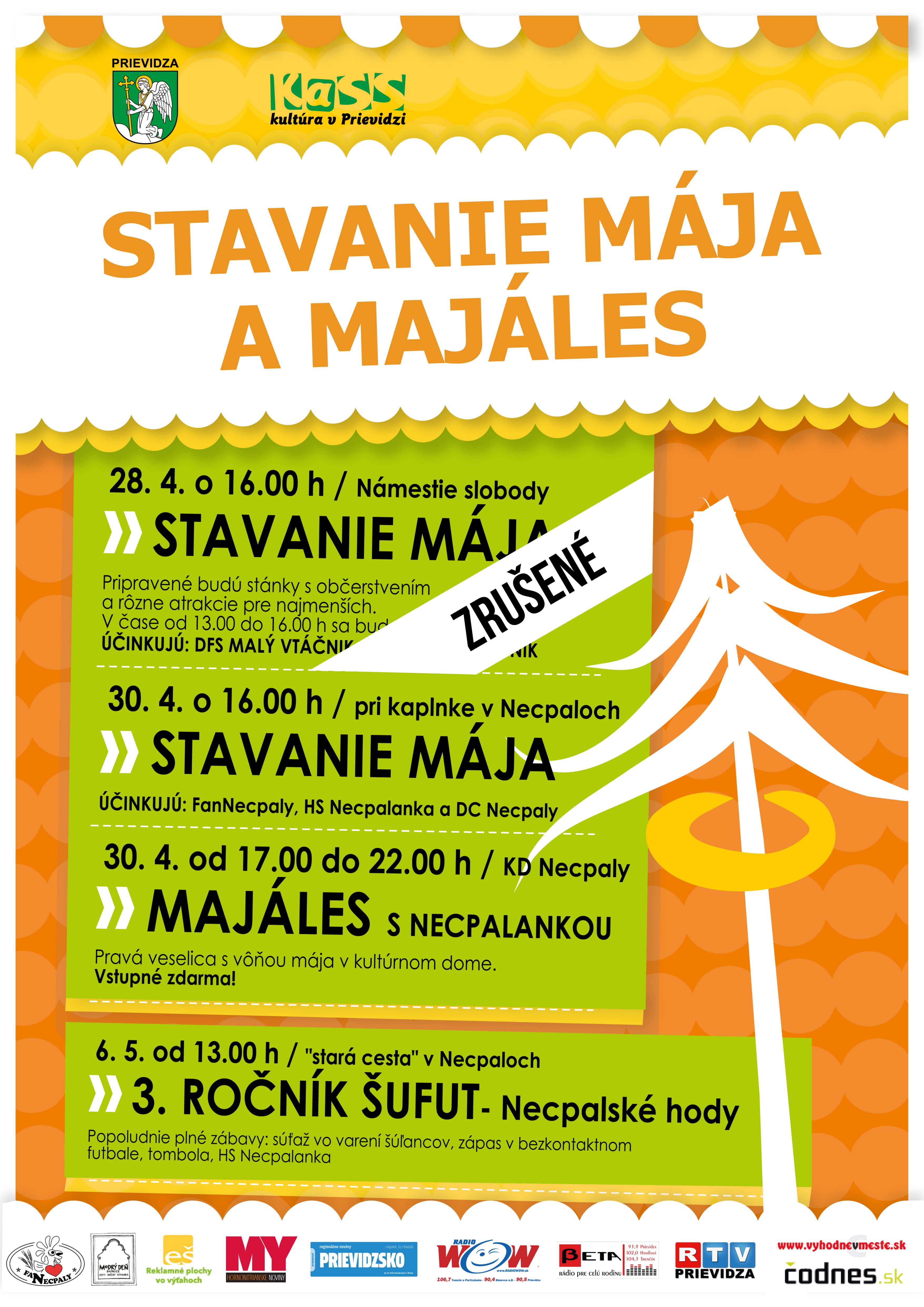 Rovnako si nenechajte ujsť 3. ročník Necpalských hodov, ktoré sú spojené s podujatím pod názvom ŠUFUT. 6. mája vás na „starej ceste“ v Necpaloch od 13.00 h čaká popoludnie plné zábavy. Nebude chýbať súťaž vo varení šúľancov, zápas v bezkontaktnom futbale, tombola a HS Necpalanka. Tešíme sa na vás!