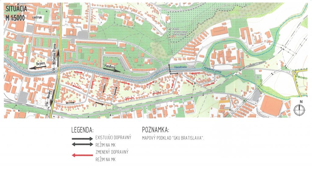 Ulica Nábrežie A. Kmeťa bude zjednosmernená v dvoch úsekoch – prvý úsek v smere od križovatky so svetelnou signalizáciou (Nadjazdová ul.) po most spájajúci túto ulicu s Nábrežím sv. Cyrila.