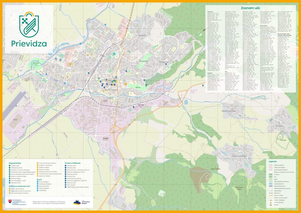 Po kliknutí na časť mesta Prievidza sa zobrazí abecedne zoradený zoznam prislúchajúcich ulíc.